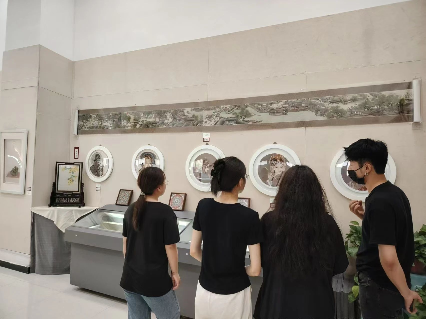 其次,团队来到开封汴绣研究所。在此团队成员进一步了解到汴绣的发展历史,并且参观了一楼大厅展出的精美绣品。