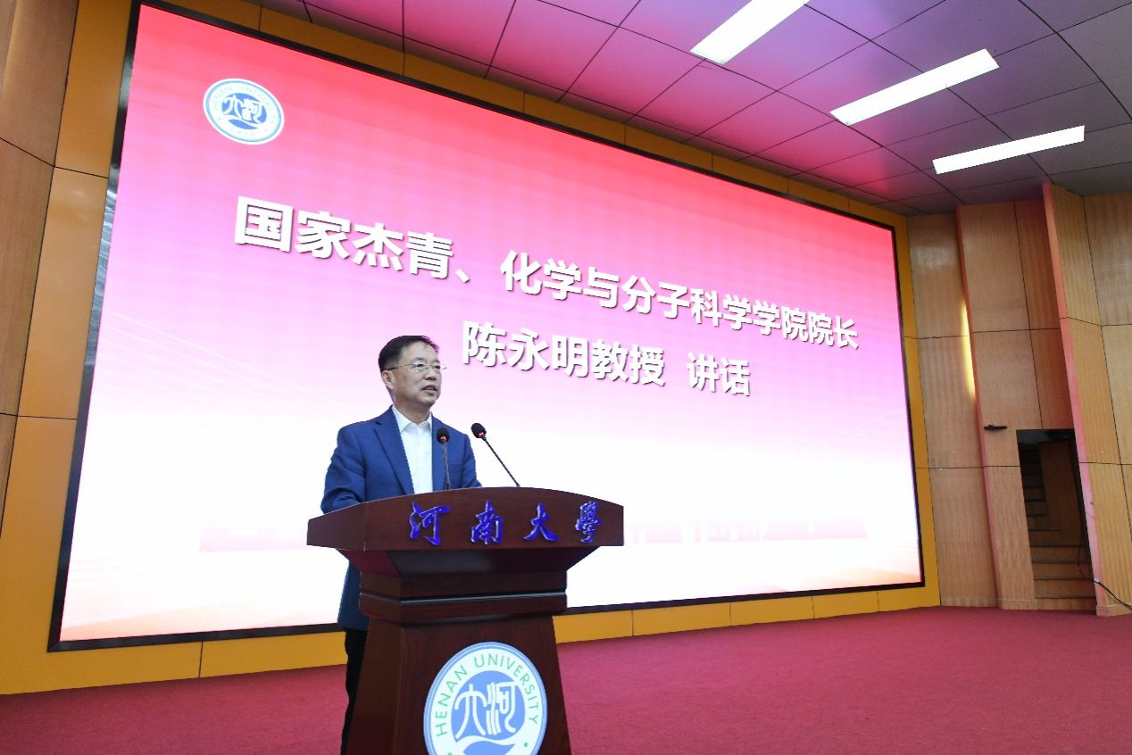 国家杰青、抗病毒性传染病创新药物全国重点实验室主任、院长陈永明对新生同学们表示祝贺,并介绍了学院和学科发展的历史沿革、发展现状及化学学科独特的魅力。他强调了化学作为自然科学核心基础科学的重要性,并希望同学们能够认真对待化学,敬畏化学。他强调,学院正在全力以赴,从人才培养、科学研究、师资队伍、社会服务等方面提升化学学科的地位,争先创优。同时,对新生们提出了四点期待:一是要“学无止境”,持续学习,从被动转化为主动;二是要学会面对困难和挫折,强大心智;三是要学会尊重和欣赏他人,多换位思考;四是要学会管理自己的生活和学习,规划好自己的未来。