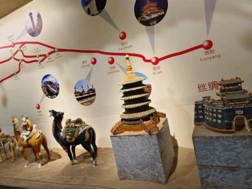 团队怀着对传统文化与科学奥秘的双重探索热情,走进洛阳唐三彩博物馆,开启了一场将化学知识与历史文化深度交融的三下乡之旅。展厅里,大家驻足于唐代三彩马俑前,仔细观察其绚丽多彩的釉色。结合所学,同学们讨论起釉色形成的化学原理,同时通过馆内相关知识讲解,同学们了解到了唐三彩悠久的历史及较为详细的制作流程。