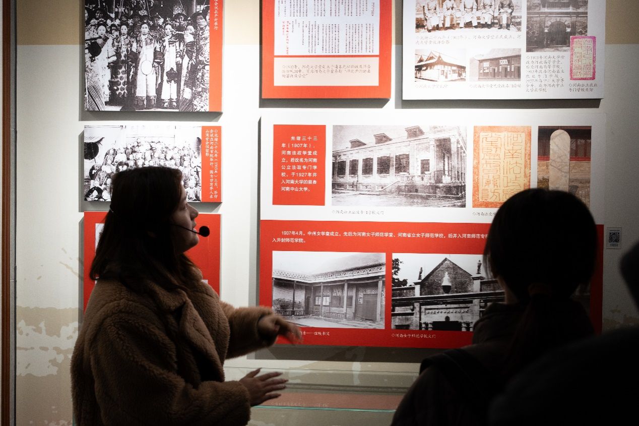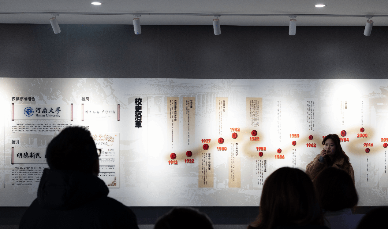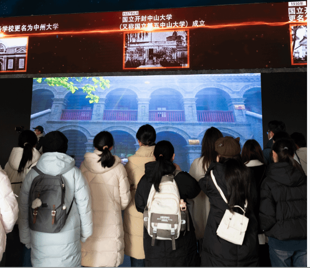 自1912年建校以来的百年峥嵘岁月与壮阔发展征程。学生分批次有序步入大厅观看校史宣传片,随后在讲解员的细致讲解与引导下,逐一参观各主题展区。从留学欧美预备学校初创奠基,到抗战时期辗转办学、弦歌不辍,再到新时代守正创新、腾飞奋进,学校发展的每一段峥嵘历程,都深深镌刻着河大人坚守“明德新民,止于至善”的校训初心,以及勇毅笃行的执着追求。