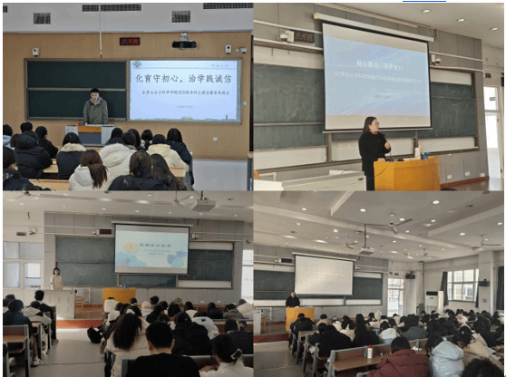 “分子阶梯”辅导员工作室组织开展期末诚信考试动员会,此次动员会各年级分别进行,本科生2022级兼2024级辅导员宁攀、2023级辅导员田梦、2025级辅导员王钏宇担任主讲人。