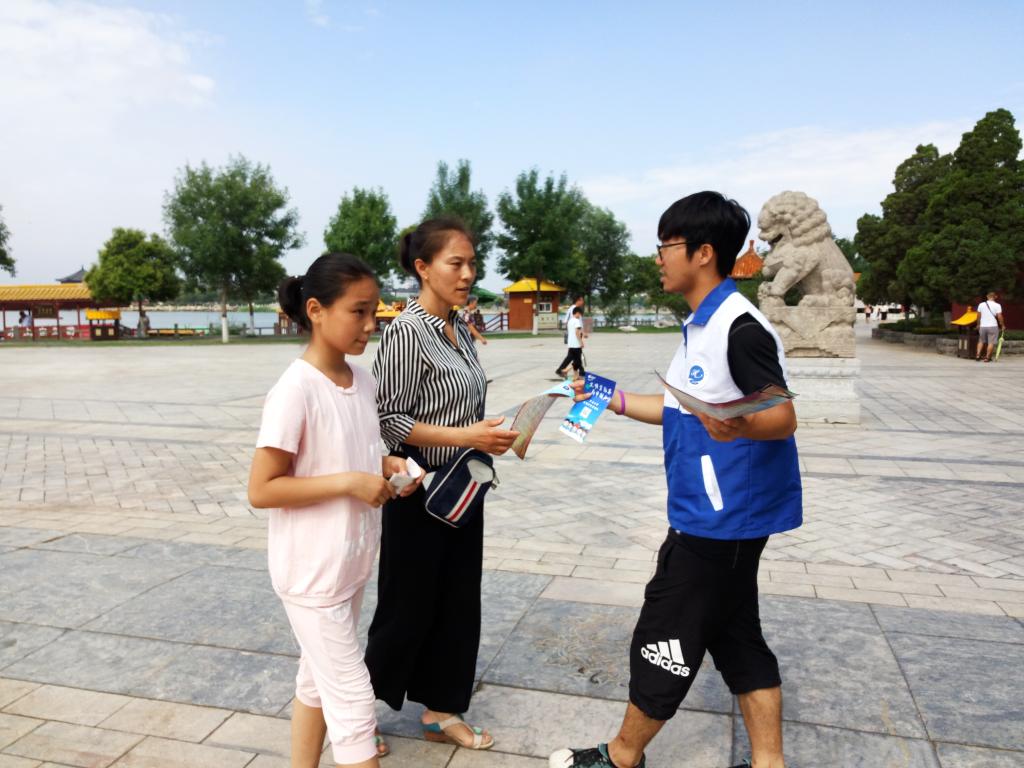 化学化工学院的文明守望者团队,今天我们在这里举办“文明背包客,为中国加分”公益活动。目的是呼吁大家文明旅游,在全社会形成弘扬文明旅游的新风尚,营造文明旅游的大环境。”“你们说的文明旅游具体是什么啊?”“文明旅游并不是什么高大上的词汇,它只是生活中的小细节的体现。比如不乱扔垃圾、不乱涂乱画、不胡乱攀爬、不破坏公共设施……做到了这些小事就是文明旅游。”一次次不厌其烦的宣讲,播下文明的种子;一次次认真的驻足聆听,文明的种子在心中生根发芽。宣传文明旅游,期待每个人都树立文明的观念,并寓之于心,付诸于行,将文明旅游进行到底。
