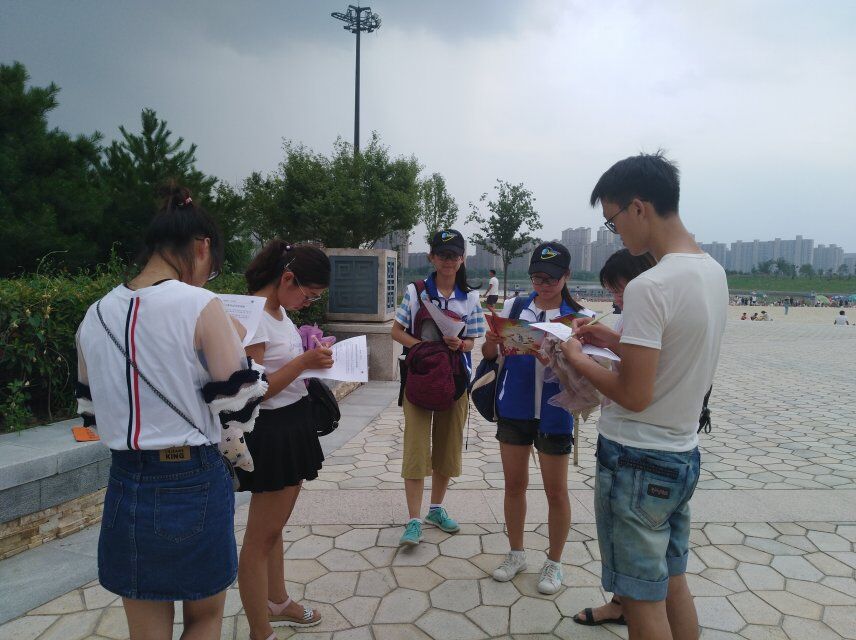志愿者团队在前期的准备工作中集思广益,广泛争取团队成员的建议,精心制作的小礼品以及宣传标语也为这次活动增添了不少色彩。在本次活动中,志愿者们分为几个不同的小组在景点寻找游客填写调查问卷,通过调查问卷来了解大家对文明旅游的了解,同时将文明旅游宣传页发放给大家,增强游客的文明旅游观念。
