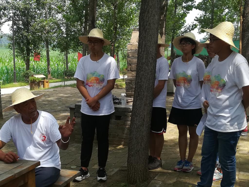 稍后,调研团到达张庄村焦裕禄精神体验教育基地,认真聆听基地村长讲解焦裕禄治理“三害”的事迹,村长热情地为调研团成员描述了习近平总书记三次考察兰考的情景,并表示出了兰考人民继续发展兰考的决心和信心。他讲到“焦裕禄书记带领我们治风沙,一铁锹土一铁锹土往上翻,再栽上泡桐,当天晚上就刮了很大的风,大家都很忐忑,不知道我们的方法有没有效,第二天一看,那片树林依旧好好的,我们都很高兴,找到了解决办法。”朴实的话语真情流露,他自豪的说,“你们看到的树已经是第三代了,我们也在不断的摸索,找更适合的路。”同学们听完感慨良多。接着,为加强自身建设,更深入体会当时的艰辛,调研团在基地参加义务劳动,汗水顺着大家的脸颊流下,虽然辛苦,心中对焦裕禄精神的理解却更加透彻。