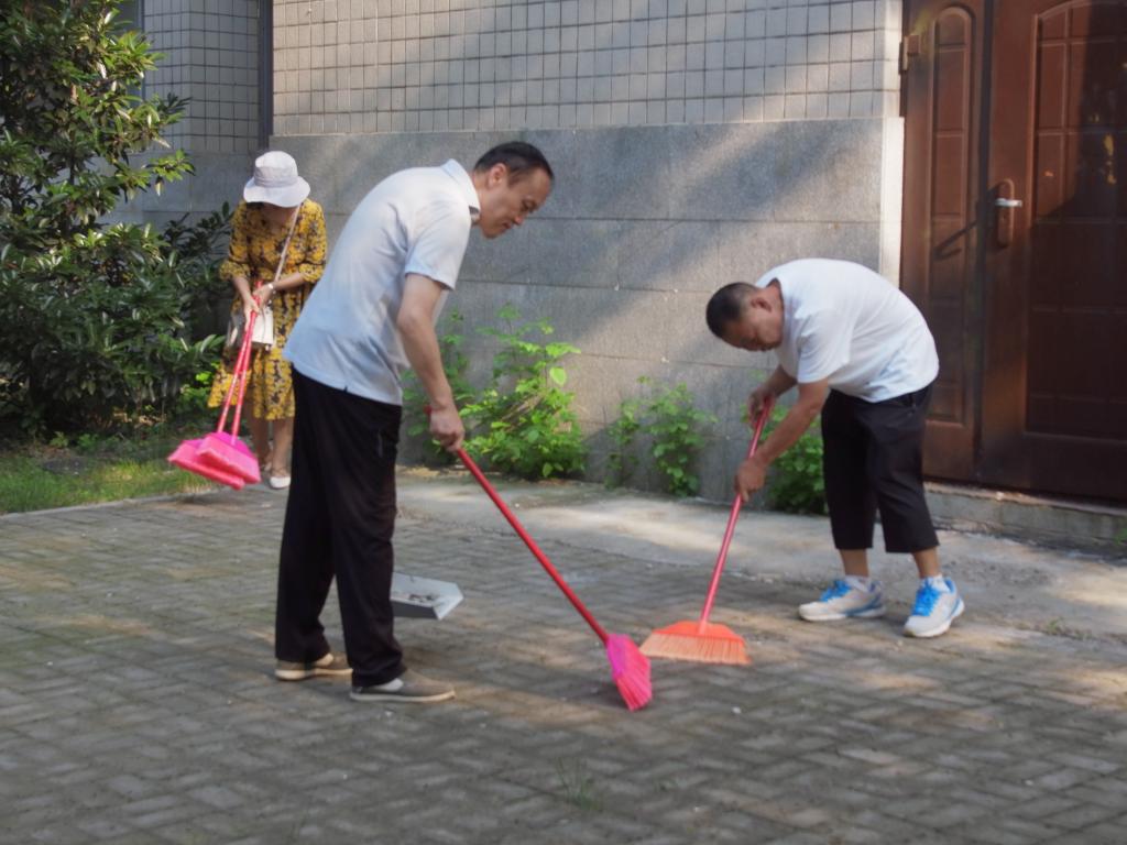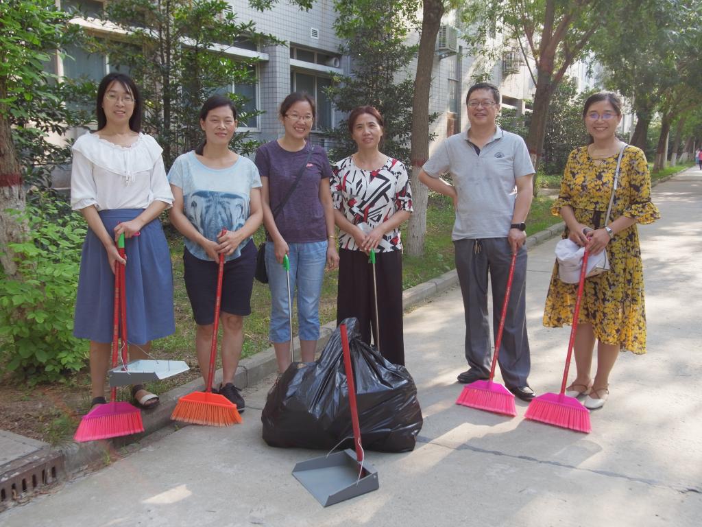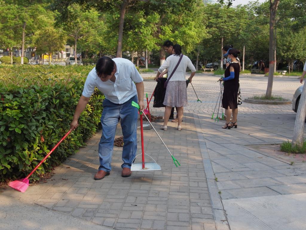 党委副书记宋立华的带领下,老师们按照要求准时在化工院门口集合,经过简单的任务安排,教职工分为四个小组并且每个小组由组长带领到指定环境区打扫卫生。下午艳阳依旧,燥热的阳光还氤氲着惫懒的气息,但老师们精神抖擞,干劲十足。各队到达指定地点后,便开始积极投入到劳动中。捡垃圾、扫地、铲平一些不平整的土地,摆放单车,一点一点改善周围的环境。老师们不仅在学术方面很有研究,在劳动中也是能手。马路边,草丛里,单车旁都可以看到他们辛勤劳动的身影。
