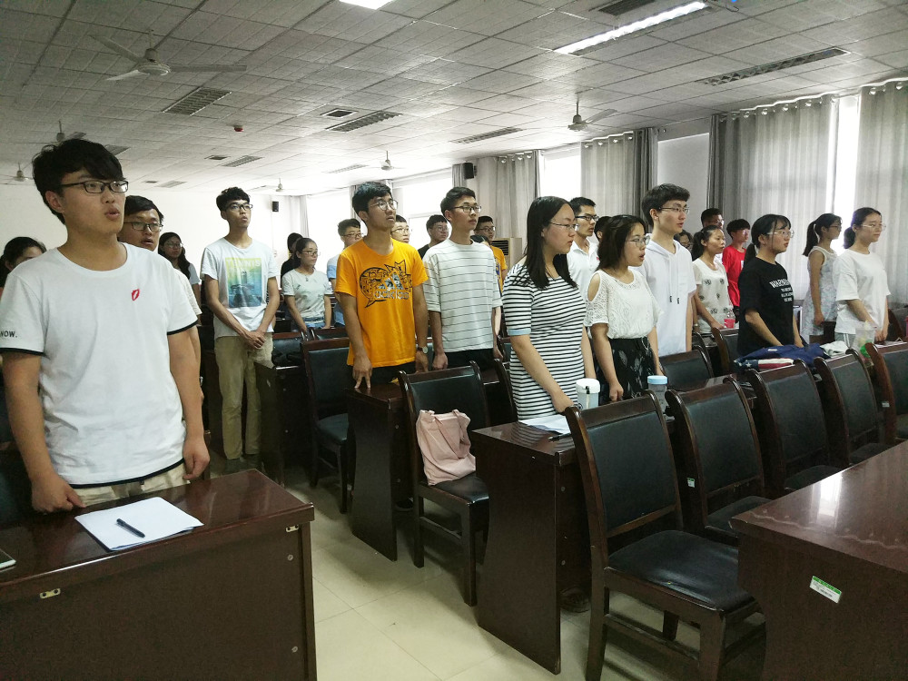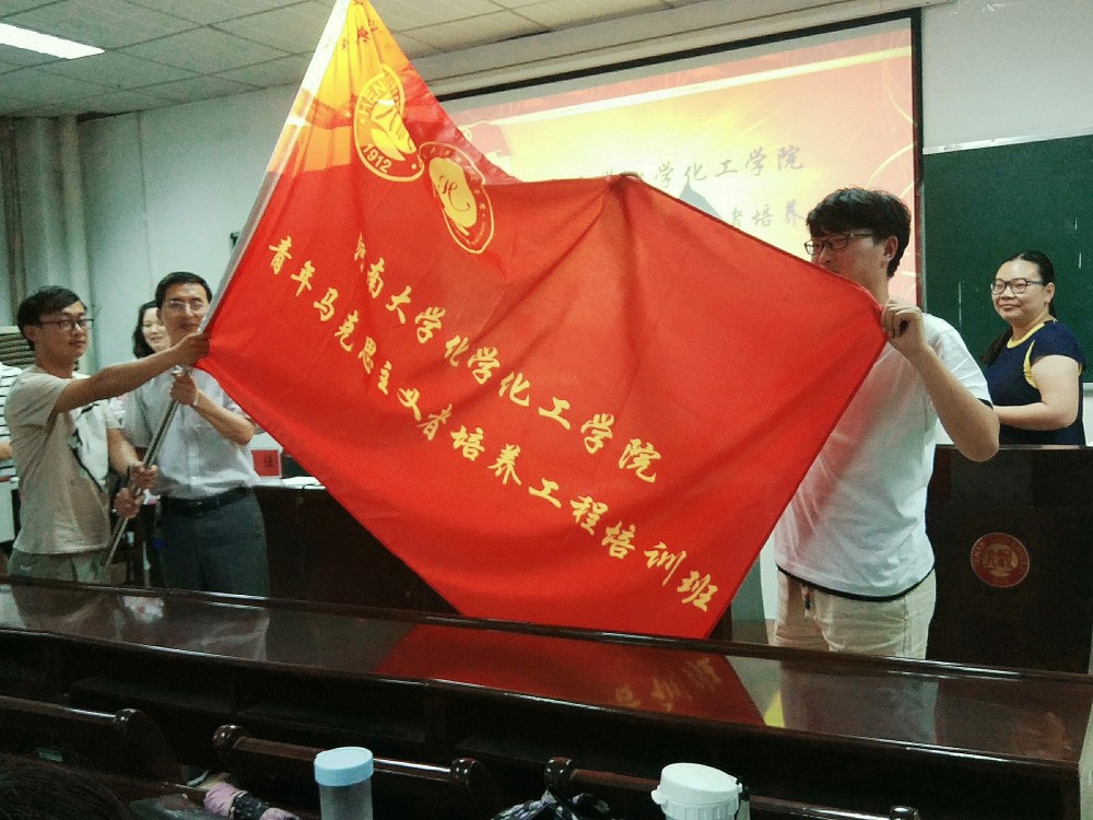 最后,宋立华为本届青马班授予班旗。班长李红涛上台接旗。授旗仪式完毕后,全体肃立,奏唱中国共产主义青年团团歌。在热情澎湃的歌声中,本次开班典礼圆满结束。
