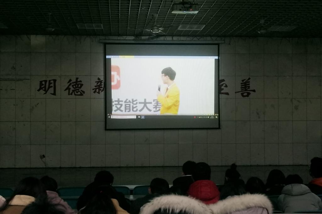 团委学生会积极响应团中央的号召,组织各年级团员于圆形报告厅观看以“2018团学改革再出发”为主题的共青团视频工作会议。视频中江苏省团委副书记司勇、重庆市九龙坡区教育团工委书记胡浩、清华大学团委书记邴浩、东北大学团委书记闫研、第四十四届世界技能大赛金牌获得者袁强以及学校共青团各方面的代表出席会议。