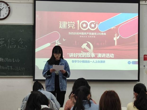 化学化工学院团委组织各团支部开展 “学党史,强信念,跟党走”系列学习教育活动。围绕中国共产党艰苦奋斗的光辉历史,各团支部以演讲的形式讲述在党的百年发展过程中涌现出的共产党人事迹,表达对英雄革命党员的崇高敬意,使团员厚植爱党情怀,并坚定自己的入党信念。