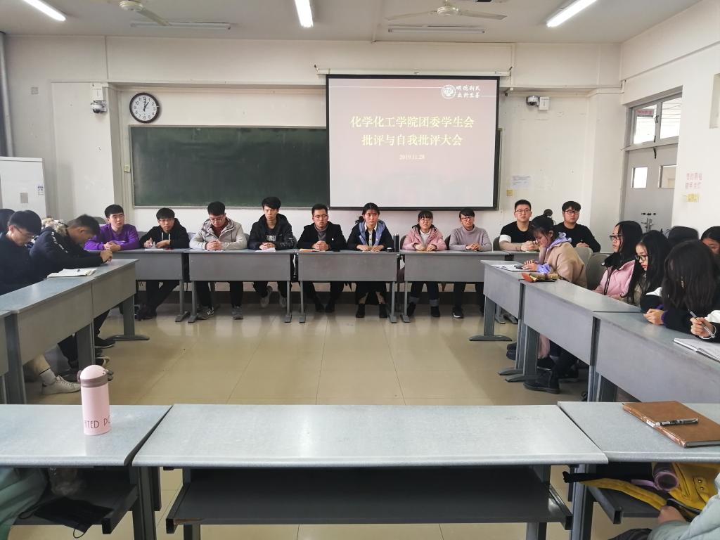 11月28日中午,化学化工学院团委学生会于7404教室举行了批评与自我批评大会。团委学生会主席团及部长层全体成员参加,会议由王宇轩主持。