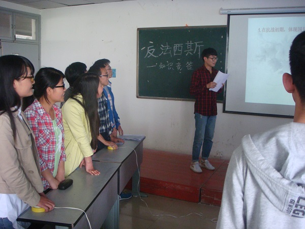 团委学生会组织部主办的“纪念反法西斯胜利70周年”知识竞答比赛决赛于此举行。从预赛中脱颖而出,来自不同年级的12支队伍,再次展开角逐,数人同台,只为夺魁。