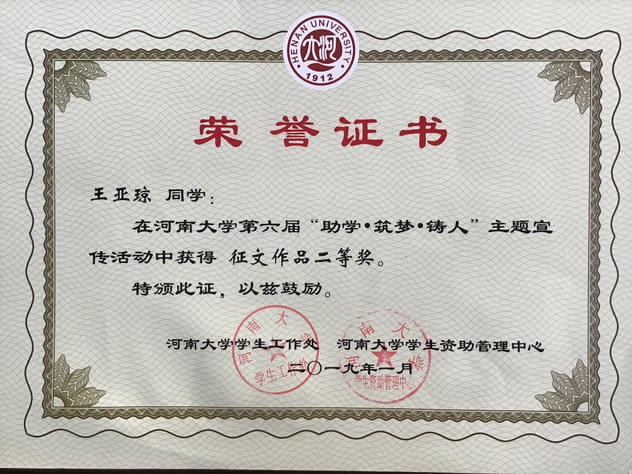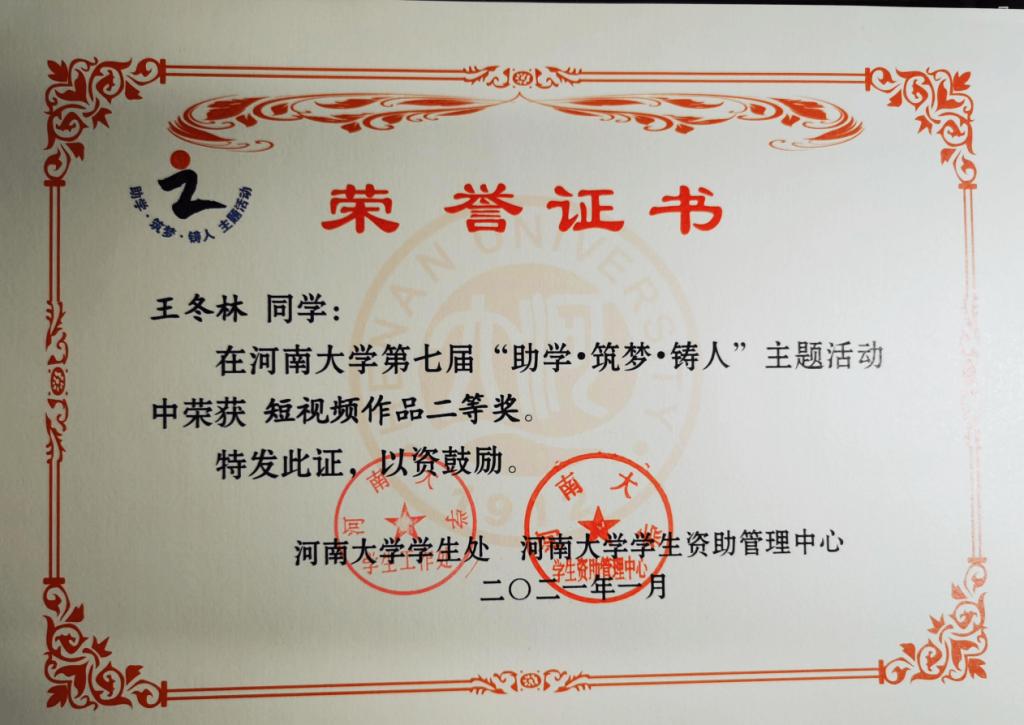 第七届“助学•筑梦•铸人”主题宣传活动视频作品二等奖、Porn87