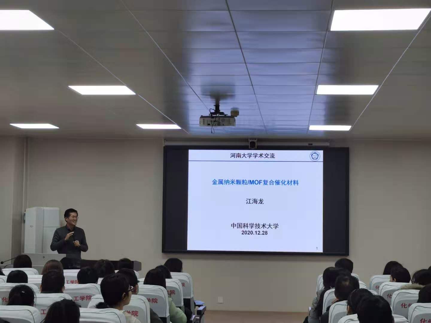 2020年12月28号上午,应学院邀请,国家杰出青年基金获得者、中国科学技术大学江海龙教授在学院226会议室作了题为“金属纳米颗粒/MOF复合催化材料”的学术报告。报告由徐元清副院长主持。