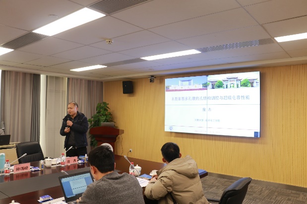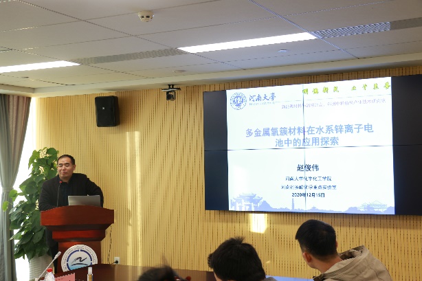 上午的活动由郑州分所副所长张延强主持。河南省多酸化学重点实验室副主任、化学化工学院赵俊伟教授,化学化工学院种瑞峰副教授,中科院过程所张海涛研究员、陈仕谋研究员、蔡迎军副研究员,依次汇报了各自在锌离子电池、锌空电池、固态锂电池、锂浆料和光电催化水氧化上的研究成果。下午的活动由化学化工学院副院长徐元清主持。化学化工学院邢瑞敏副教授、李西营副教授、庞杰博士,过程所郑州分所刘艳侠副研究员、赵冲冲博士,分别汇报了各自在锂硫电池、超级电容器、硫化物电催化、纳米碳材料电化学储能等方面的研究成果。每个报告结束后,参会人员积极发言,就领域内的关键共性问题展开了深入的讨论,整场气氛热烈。