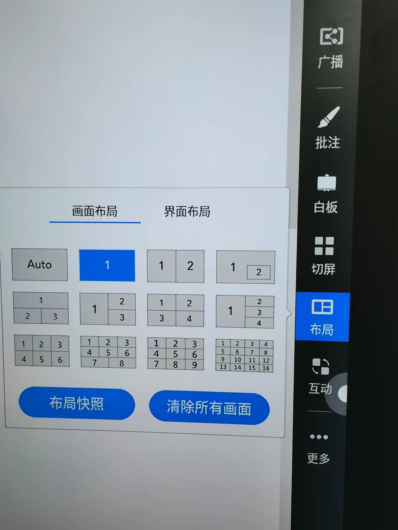 所有投屏进入311网络——开始投屏——布局——切屏(选择布局需要显示视频)