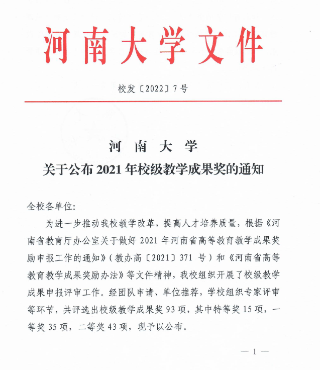 校级教学成果一等奖