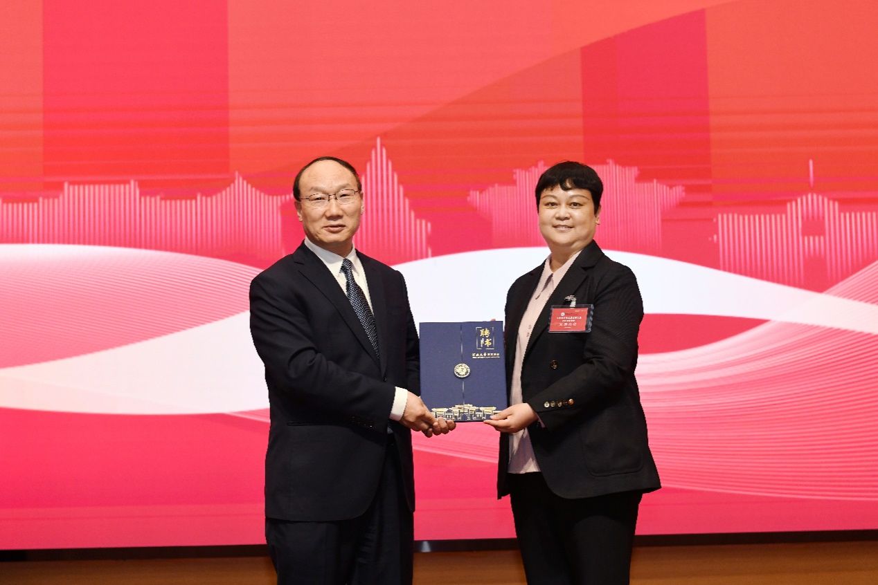 党委书记常凤香当选为理事会成员、常务理事,校长张锁江院士颁发聘书。