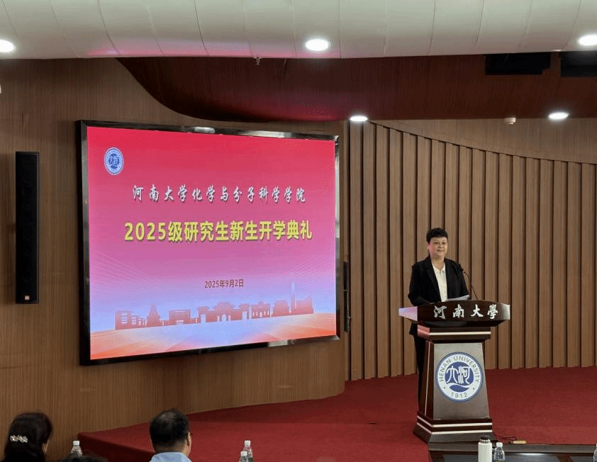 的志向。她真诚希望同学们将个人理想与国家发展紧密相连,把自己的“小我”融入祖国的“大我”之中,祝福同学们在追逐梦想的路上,既有乘风破浪的勇气,也有脚踏实地的坚定。在校生代表、2024级博士研究生孙嘉良向同学们介绍了学院的科研平台和设施,并结合自己的切身体会,围绕科研与成长方面建议大家要夯实基础、潜心钻研;善用平台、拓展视野;心怀责任、共同成长。他祝愿大家既能沉心于实验桌前,探究分子之间的奥秘,也能放眼于社会未来,书写属于自己的精彩篇章。
