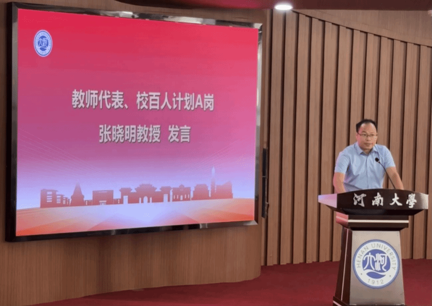 校“百人计划”A岗张晓明教授作为教师代表发言。他向2025级研究生新生表示热烈欢迎,并提醒同学们应及时完成从“被动学习者”到“主动研究者”的角色转变,激励大家要保持初心、筑牢学术根基;敢于“试错创新”、培养科研韧;坚守“学术诚信”,涵养学者品格;充分利用相关资源、助力科学研究。同时,他建议大家在学术追求与日常生活之间找到平衡,保持身心健康,以饱满的状态迎接研究生阶段的挑战。导师会作为学生学术路上的“引路人”和成长路上的“陪伴者”,助力大家在成长成才的道路上稳步前行。