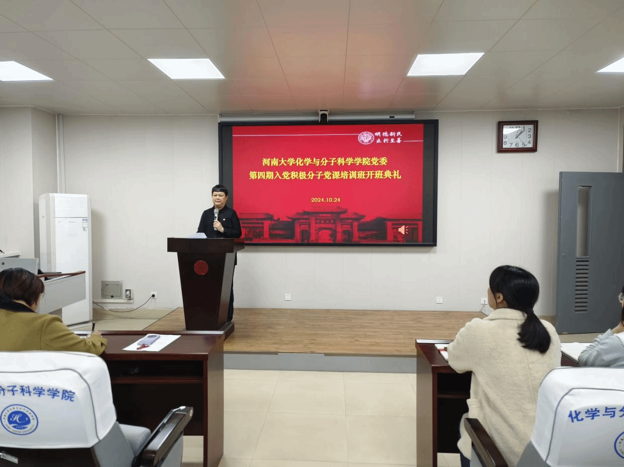 常凤香作动员讲话。她向学员们提出三点期望:一是系统学习中国共产党章程、性质、宗旨等党的基本原理,明确党员的权利与义务,并将所学理论投入实践,与人生的规划紧密结合。二是希望学员端正入党动机,增强社会责任感和使命感,在社会需要自己的时候冲锋在前,为学校、社会与国家做出奉献。三是号召学员们要起到模范带头作用,筑牢知识基础,积极交流沟通,提升综合能力。她表示,学院向来高度重视入党积极分子党课培训课程,旨在加强入党积极分子的思想教育和党性锻炼,培养更多的党员后备力量,为学院的发展注入新的动力和活力。