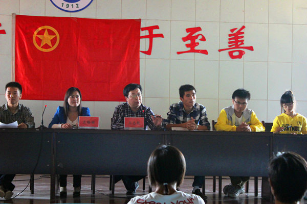广大青年团员服务,它是学院和学生间的桥梁,要想构架好这桥梁,大家应明确责任,严于律己、提高修养、树立正确的人生观,价值观和世界观,起到模范作用。她鼓励在场学子无私奉献,锻炼能力,扎实工作,继往开来。