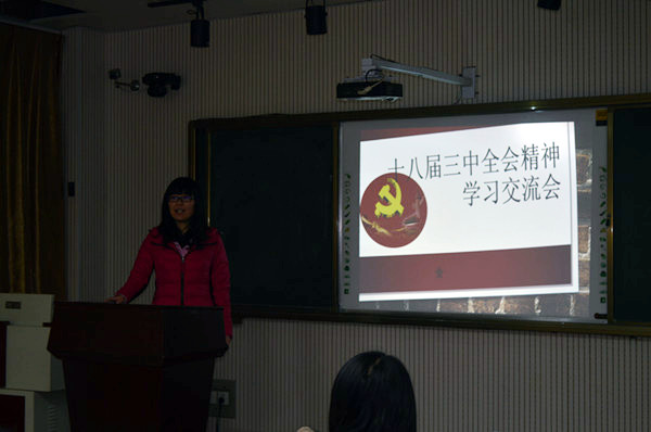 本科生第三党支部支部会议——“十八届三中全会精神学习交流会”在院311会议室举行。该支部全体学生党员与会。会议由该支部党员、2011级年级团支书张苗苗主持。