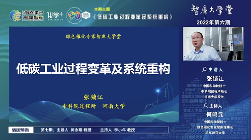 7月29日,校长张锁江院士在中国绿色催化专家智库化学+智库大学堂作“低碳工业过程变革及系统重构”的学术报告,报告会由中国科学院院士、绿色催化专家智库理事长、华东师范大学何鸣元教授主持。