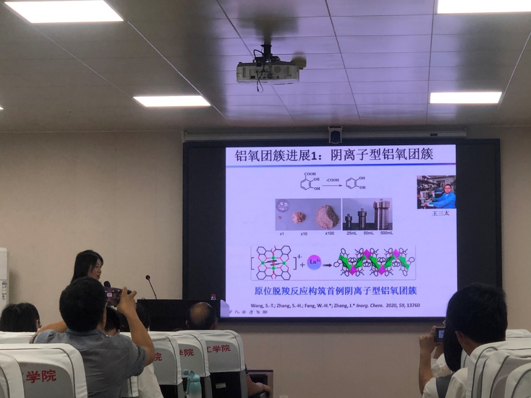 金明校区化学化工学院226会议室分别作了题为“表面全官能团化的二维材料”和“铝氧分子环的设计合成”学术报告。报告由副院长徐元清主持。
