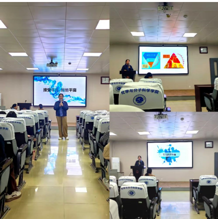 2025年10月22日,我院“化育讲堂·育师系列”第八期专题讲座如期举行。本次讲座以“接受平凡,拒绝平庸”为主题,特邀河南省实验中学中教高级教师、教研组长杨洁主讲,学院王玉霞老师主持,学院22级化学专业全体学生参与。