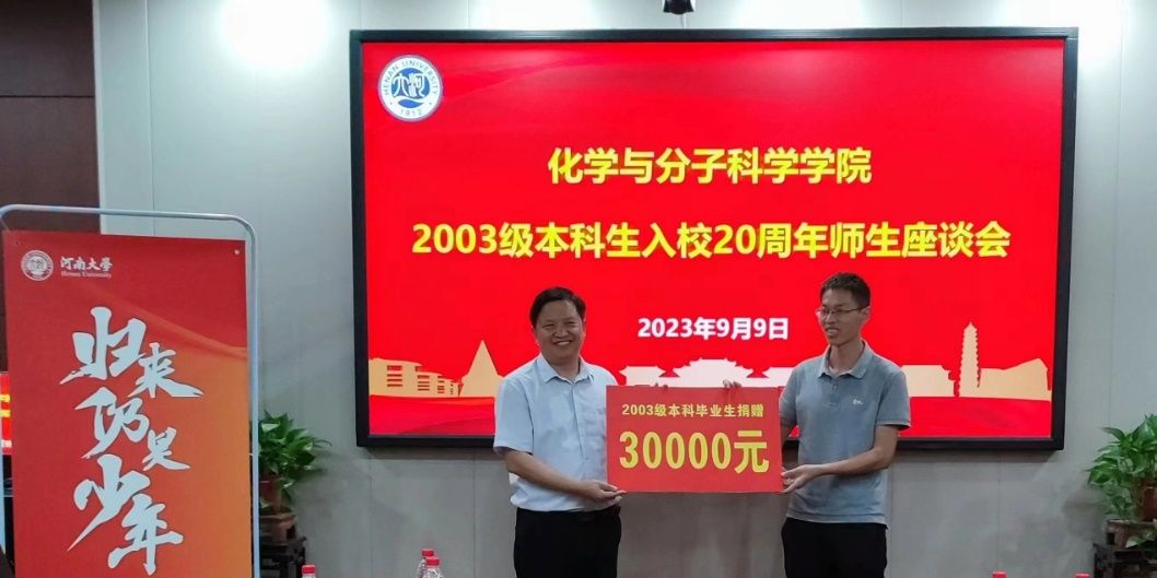 以学科发展为引领,做好校友捐赠工作。学院设立《河南大学助航奖学金》和《化学与分子科学学院教育基金》《化学学科百年庆典基金》,校友任职的河南中镜科仪科技有限公司、河大纳米材料工程研究中心有限公司、濮阳市联众兴业化工有限公司等企业,1993届、2002届、2002届、2003届、2007届和2013届秩年返校年级,薛冬峰、李鑫恒、孙会靓、赵俊东等校友,共计为化学学科捐赠50余万元,助力学科和学院人才培养、文化建设和提升软硬件条件。