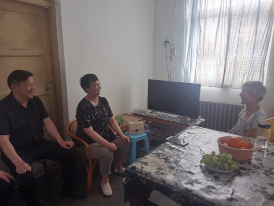 在老党员蔡淑珍老师家中,常凤香耐心了解老人生活需求,鼓励她继续保持乐观心态、保重身体,在生活中遇到困难时,及时向学院反映。屈建莹亲切地和王金中老师聊起家常,关切地询问他的生活起居和身体状况,嘱咐老人保重身体,也希望王老师不忘初心,继续发挥余热,关心和支持学院的发展。89岁高龄的马英哲老师自豪地告诉大家,自己的眼睛和耳朵比同龄人好很多,自己能看报纸、看新闻,跟其他人顺畅聊天,能够及时了解学校和学院的变化。李长轩老师一直关注学院的发展,对学院的老师记忆深刻,能准确说出不少老师所在的教研室;常凤香向李老师的家人详细询问了李老师的身体状况和生活情况,鼓励李老师保重好身体、以乐观积极的心态对待生活。每一位老教师都谈到了学院更名的事情,由此看出老师们一直都在关注着学院。