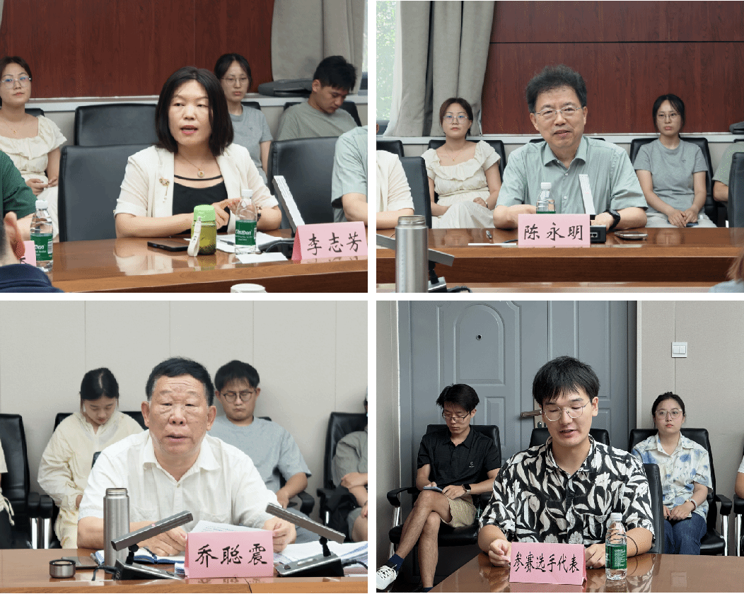 李志芳指出,本次大赛对深化“双碳”战略育人价值、提升研究生实践创新能力具有重要意义,鼓励学子将科研创新与国家绿色发展需求紧密结合,并希望参赛选手在校赛中积攒经验,在国赛中赛出风采。陈永明阐述了学科交叉在“双碳”领域的重要性,希望大家紧跟国家战略,多与学界、企业界专家的进行学术交流,将产学研用紧密结合,真正开展“顶天立地”的科研活动,并表示学院将全力搭建创新实践平台,助力培养面向未来的绿色科技人才。评委组组长乔聪震代表全体评委庄严承诺评审工作的科学性、公平性,并寄语选手“以创新破题,用智慧作答”。参赛选手代表来自化学与分子科学学院2024级材料与化工专业硕士研究生杨伊航表示,感谢学校学院为同学们搭建这个平台,选手们将以赛促学、提升能力,通过比赛把创新动能注入“双碳”征程,践行新时代研究生的责任担当。
